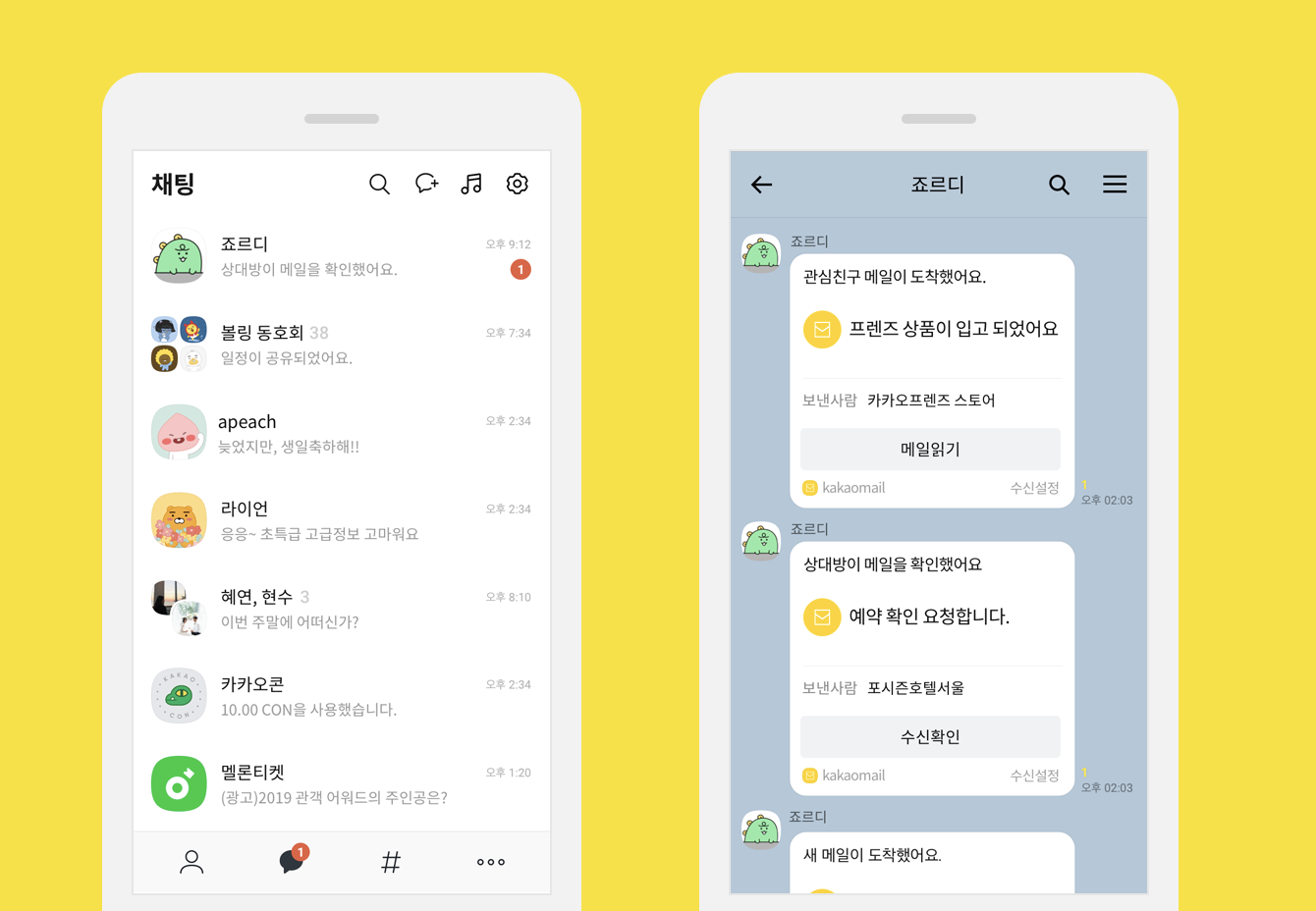 카카오 메일의 톡비서 죠르디는 메일 계의 혁명이에요. 죠르디는 톡비서 답게 비서 역할을 톡톡히 해줍니다. 우선, 관심 친구로 등록한 메일에서 메일이 도착하면 카카오톡으로 죠르디가 알려줍니다. 게다가, 상대방이 메일을 확인하면 그 즉시 알려주는 기능도 있어요. 정말 나에게 메일을 관리해주는 비서가 하나 생긴 느낌! 톡비서 죠르디 때문에 카카오 메일은 업무용 메일에 최적화되어 있다는 말이 나온 것 같네요.